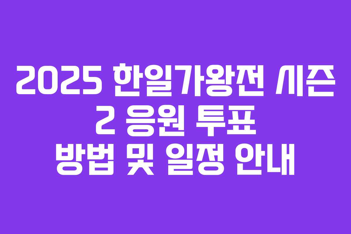 2025년 9월, 대한민국과 일본의 대표 가수들이 다시 한 자리에 모여 ‘한일가왕전 시즌 2’가 시작되었습니다. 이번 시즌은 한일 수교 60주년을 기념하는 특별한 의미를 지니고 있으며, 팬들의 열띤 응원이 더욱 중요해졌습니다. 가수들은 자국의 명예를 걸고 출전하며, 팬들은 그들의 성공을 위해 투표에 참여해야 합니다.