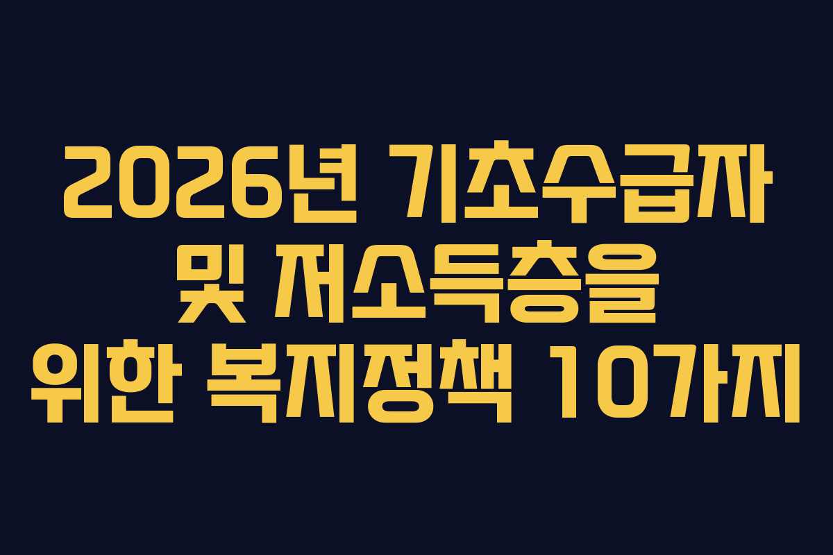 2026년은 기초수급자와 저소득층을 위한 다양한 복지정책이 시행되는 해입니다. 정부의 예산안에는 이러한 계층의 생활 안정을 위한 중요한 지원책이 포함되어 있습니다. 이번 글에서는 2026년부터 시행될 복지정책의 핵심 내용 10가지를 정리해 보겠습니다.