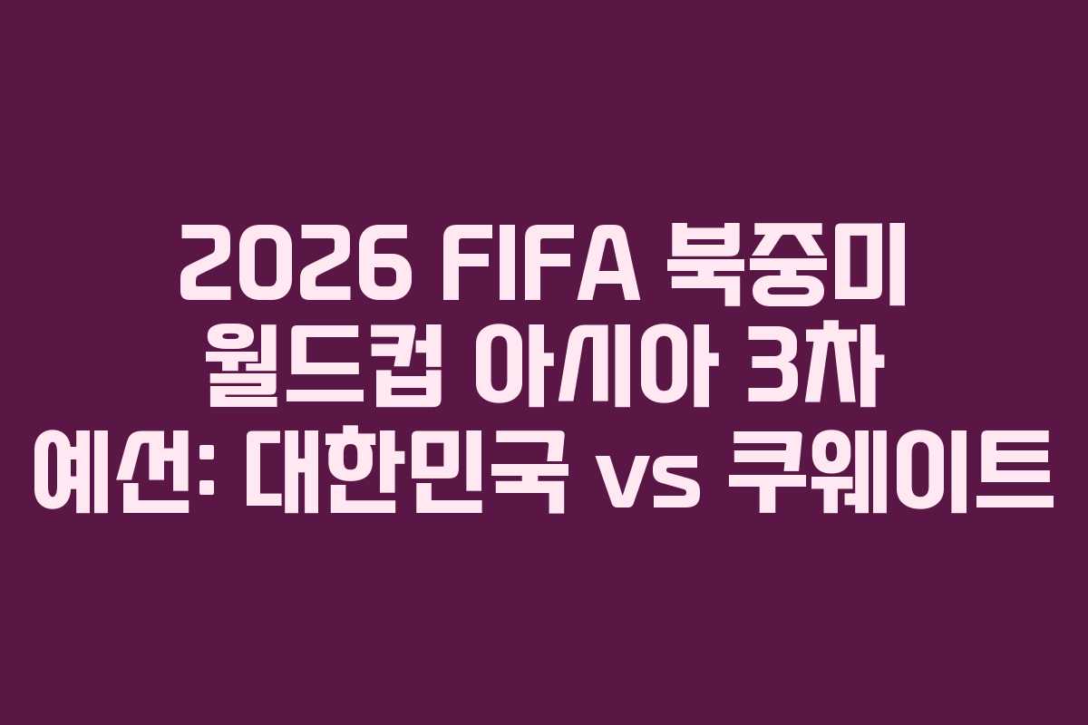 2026년 북중미 월드컵이 다가오면서 아시아 3차 예선이 한창 진행되고 있습니다. 이번 포스팅에서는 대한민국 축구 국가대표팀의 쿠웨이트와의 경기에 대한 주요 정보와 선수 명단을 정리해보겠습니다.