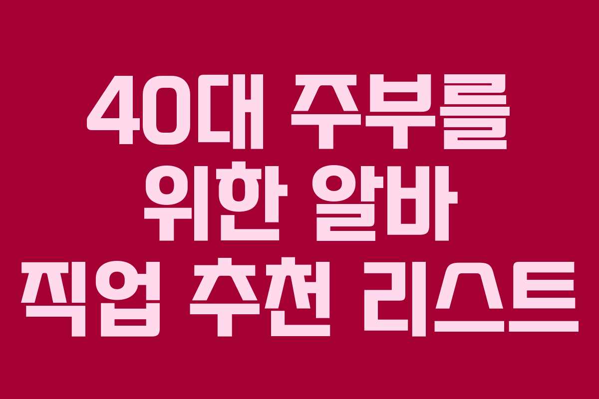 40대 주부들이 아르바이트를 찾는 것은 경제적인 독립이나 자아 실현, 가족을 위한 기여 등 다양한 이유가 있습니다. 이러한 필요에 맞춰 적합한 알바를 찾는 것이 중요한데, 현재의 라이프스타일과 체력, 기술 수준에 맞는 직업을 선택하는 것이 장기적으로 유리합니다.