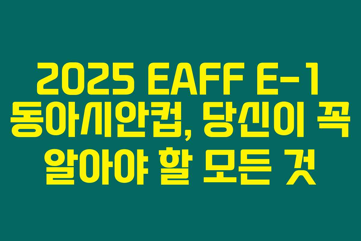 2025 EAFF E-1 동아시안컵, 당신이 꼭 알아야 할 모든 것