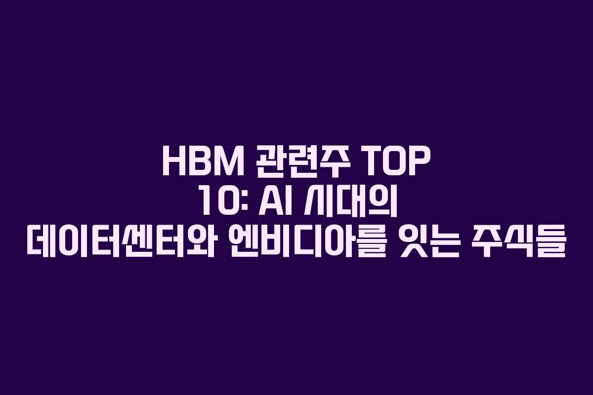 키워드: HBM 관련주 TOP 10, HBM 관련주, HBM, 데이터센터, AI, 엔비디아, SK하이닉스, 삼성전자, 반도체 장비, 프로브카드, 패키징,