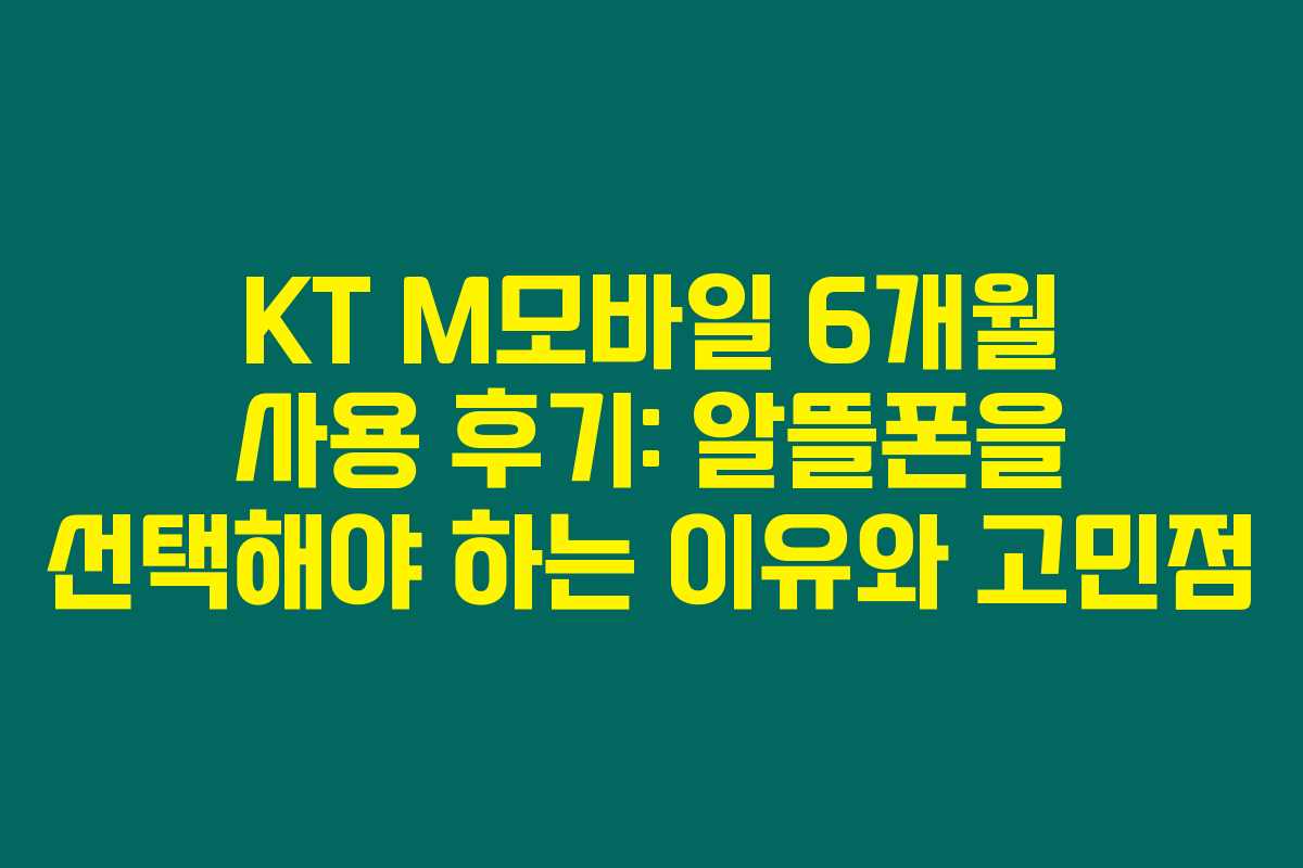 KT M모바일 알뜰폰을 6개월 간 써본 결과, 가격적인 혜택과 셀프개통의 간편함은 정말 좋았어요. 통신 품질도 믿을 만하고 할인 혜택도 신경 쓸만했거든요.