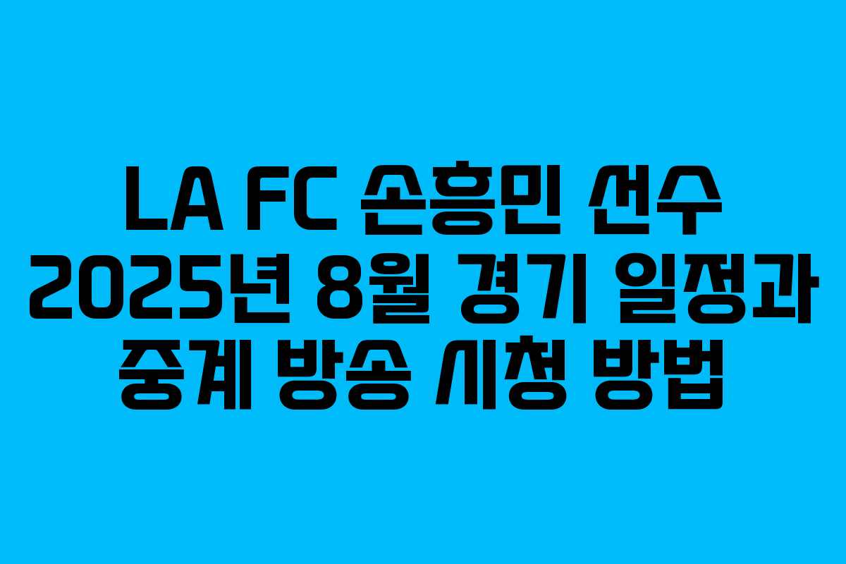손흥민 선수가 LA FC에 입단하면서 많은 팬들이 그의 8월 경기 일정과 중계 방송 방법에 대한 관심을 보이고 있습니다. 이번 포스팅에서는 2025년 8월에 진행되는 LA FC의 모든 경기 일정을 한국 시간 기준으로 정리하고, 한국에서 중계 방송을 시청하는 방법에 대해 안내하겠습니다.