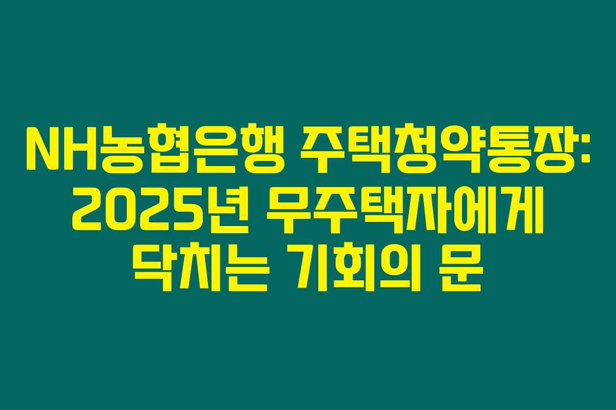 특히, NH농협은행의 주택청약통장은 무주택자를 위한 다양한 혜택을 포괄해서 준비하고 있어, 주택 소유의 꿈을 이루는 데 큰 도움이 됩니다.