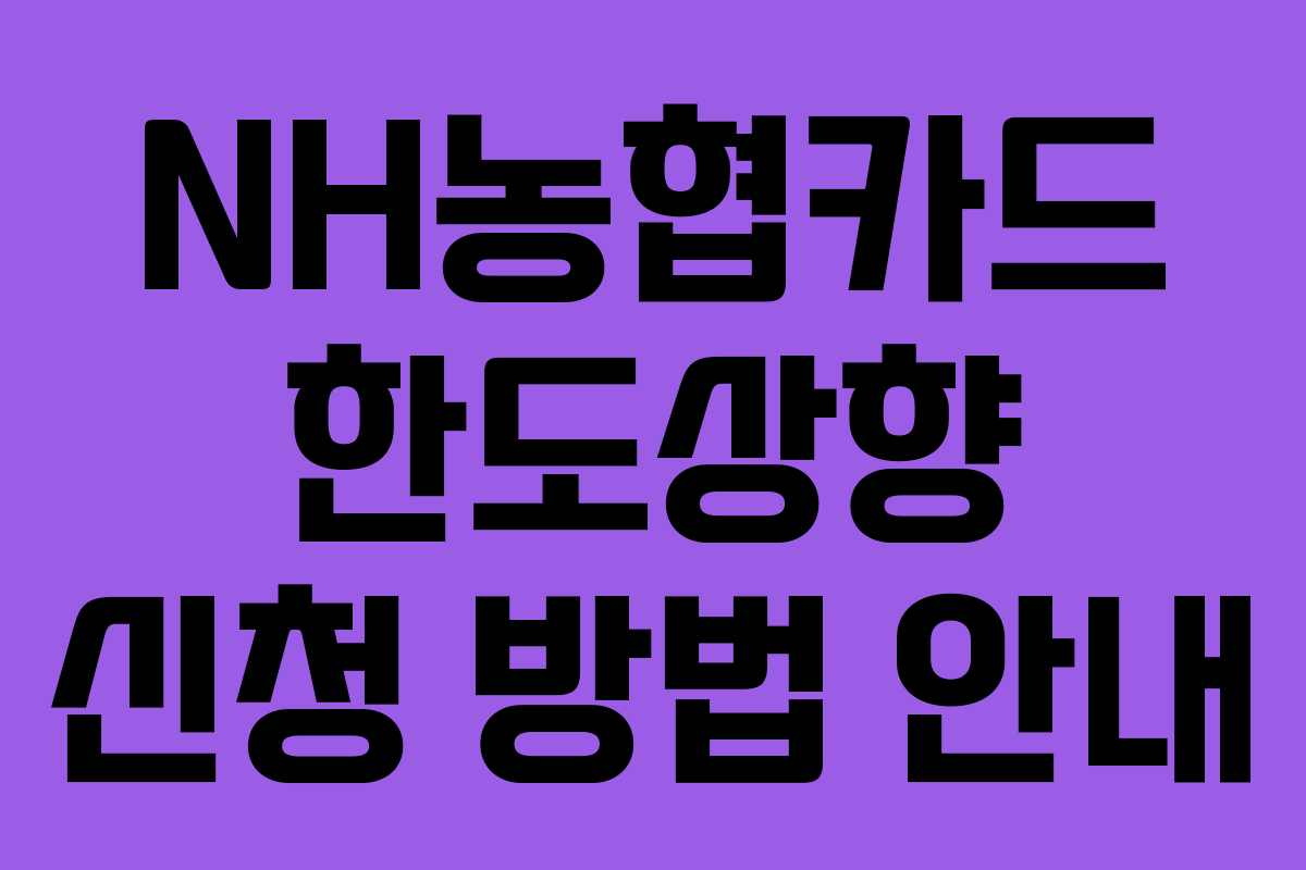 농협카드를 사용하면서 한도가 부족하여 불편함을 느끼는 경우가 많습니다. 이럴 때 카드 한도를 상향하면 더욱 편리하게 이용할 수 있습니다. 이번 글에서는 NH농협카드의 한도상향 신청 방법과 주의해야 할 점에 대해 자세히 설명하겠습니다.