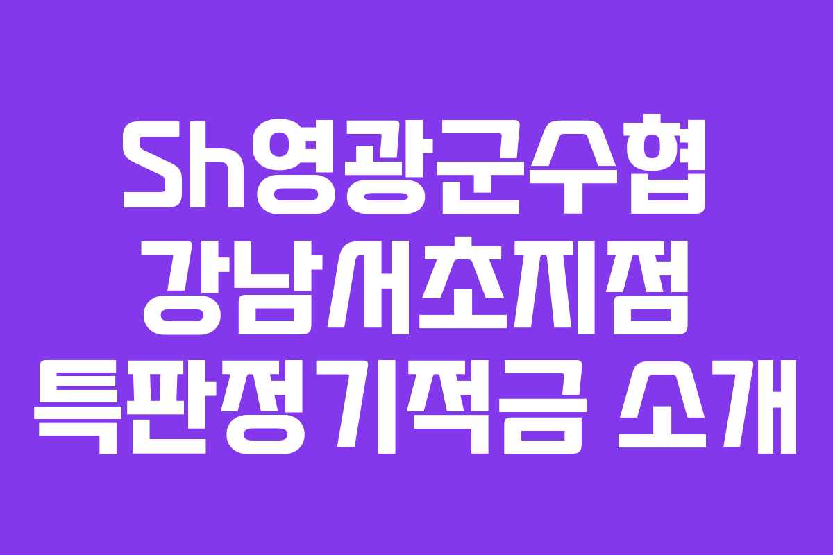 서울 강남구에 위치한 Sh영광군수협 강남서초지점에서 현재 특판정기적금을 판매 중입니다. 이 상품은 12개월 동안 연 6.0%의 고금리를 제공하며, 직접 방문하여 가입해야 하는 대면 상품입니다. 이번 포스트에서는 이 상품의 특징과 가입 조건, 세금 혜택에 대해 자세히 알아보겠습니다.