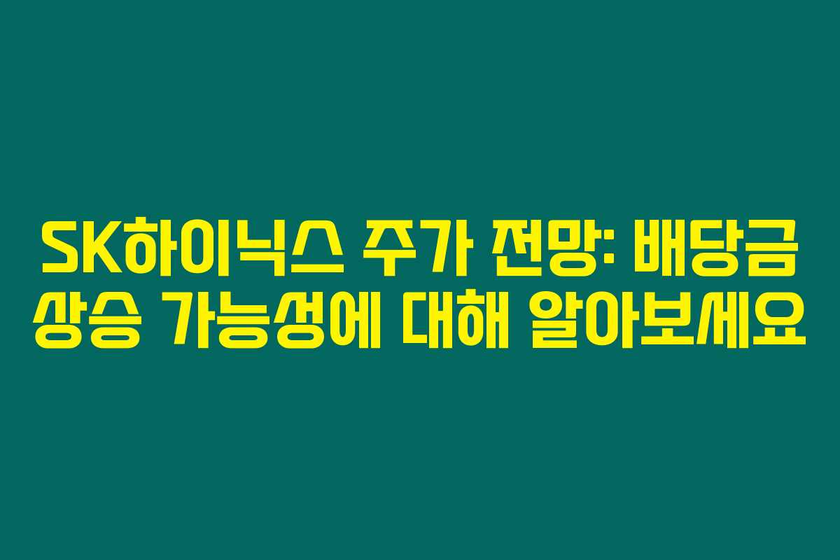 SK하이닉스 배당금: 다시 오를 수 있을까?