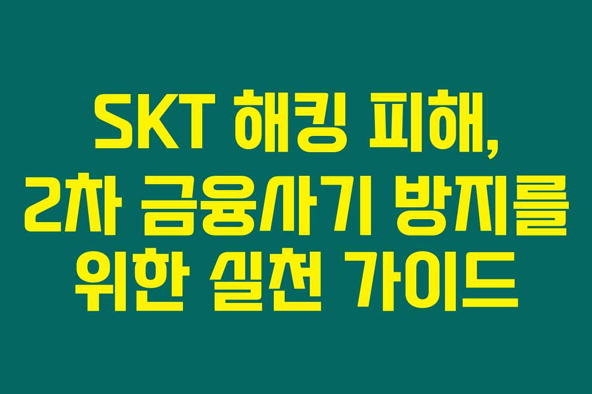 이번 SKT 해킹 사건의 여파로 2차 금융사기가 도사리고 있습니다. 개인 정보를 지키기 위해서는 유심 보호 서비스와 다양한 인증 절차가 필수라 말씀드리고 싶습니다. 이 글을 통해 어두운 미래를 피하고, 금전적 안전을 지켜나가길 바랍니다.